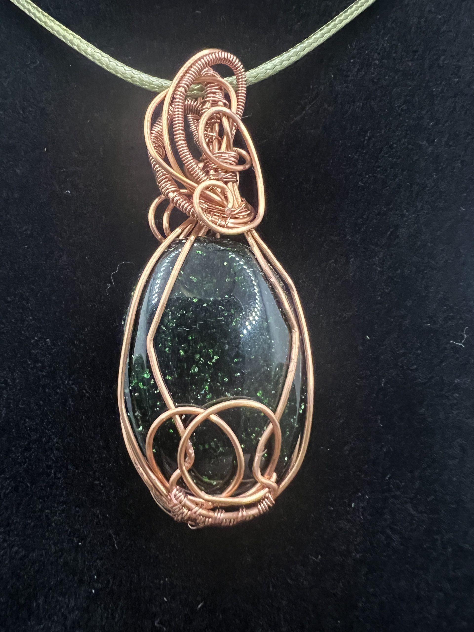 Be the first to review “Green Sandstone Oval Copper Wire Pendant”